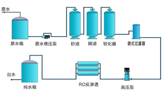 以常見(jiàn)的超純水處理工藝為例,大流量多袋式過(guò)濾器可以用在反滲透設(shè)備之前和多介質(zhì)過(guò)濾之后,主要起到的是精密過(guò)濾和保護(hù)過(guò)濾的作用。