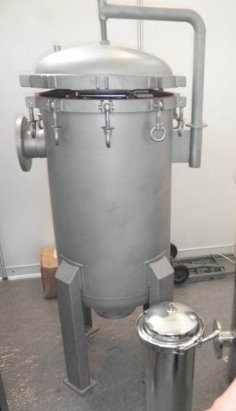 前置袋式過濾器的操作方法比較簡單,在使用時只需將廠家所需要細度等級的濾袋安裝在設備的濾筒內,檢查O型密封圈是否完好,然后旋緊濾筒蓋環(huán)形螺栓,即可投入工作。泵啟動后,過濾機上壓力表微微上升,初始壓力約0.05MPa左右,隨著使用時間的延長,缸內濾渣逐漸增多,當壓力達到0.4MPa時,應停機打開筒蓋,檢查濾機袋留渣情況,可更換濾袋繼續(xù)使用(濾袋通過清洗一般可重復使用)。過濾機壓力一般調在0.1-0.3MPa比較合適,可通過回流管路或泵上回流閥來調節(jié),過濾壓力過高會損壞濾袋以及保護網(wǎng),需格外注意。
