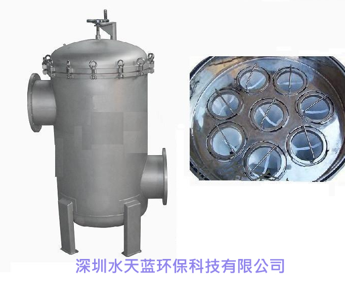 多袋式過濾器結構和單袋式過濾器差不多,唯一不同的是多袋式過濾器上蓋會有一個搖臂,因為多袋式過濾器產水量相對于單袋式過濾器來說要大的多,多袋式過濾器一般安裝在產品水過濾處理系統前段,為ro膜過濾系統提供合格的濾液。